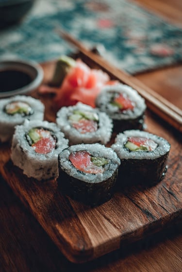 Servir sushi em casa com aparência profissional é muito mais simples do que parece. A apresentação é um dos pilares da culinária japonesa, pois ela valoriza equilíbrio visual, minimalismo e contraste de cores. O primeiro passo é escolher um prato adequado: tons escuros, como preto ou ardósia, destacam melhor o brilho do peixe e o branco do arroz. Já pratos brancos criam uma estética limpa, ideal para peças coloridas como hossomaki com cenoura, pepino ou manga.
