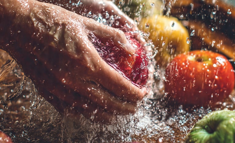 Lavar bem os alimentos em água corrente