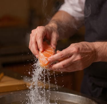 A técnica Shiojime é uma etapa tradicional da culinária japonesa usada para melhorar textura, sabor e segurança de peixes destinados ao consumo cru. Muito utilizada em peixes brancos, anchovas, cavalinhas e até cortes específicos de salmão, ela consiste em aplicar sal de forma controlada para desidratar levemente as fibras, realçar o umami e reduzir a carga microbiana natural do pescado.